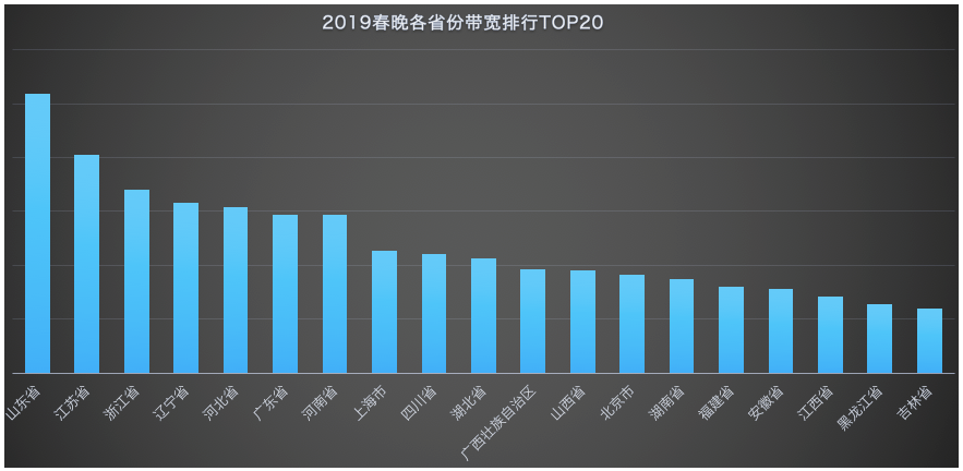 今年是阿里云第四年护航春晚,大型晚会检验技术力量,也是验证视频云能力的关键时机。猪年春晚,阿里云作为强有力后盾,支持了数十家平台的春晚的在线直播以及抢红包等活动,为网友们的云上春晚提供了技术保障。通过CDN的实时日志,我们能看到2019年春晚各省份的带宽排行,从另外一个方面反映了网友参与春晚活动的排行。