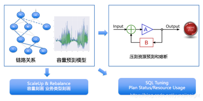 蚂蚁数据库目前所采用的策略主要有两种,一种是基于经验的决策,依靠蚂蚁DBA专家的经验建立一颗决策树,在判断当前的情况符合决策树中的分支时,决策执行提前设定好的预案。另外一种是基于学习的决策,这部分可以使用聚类或者控制理论算法来实现,在蚂蚁我们使用了最朴素的策略。这方面最大的挑战就是如何积累学习所需要的数据,因为机器学习的很多算法需要大量数据进行训练,蚂蚁为了积累这些数据开发了DB风险回归平台,其能够以95%的程度仿真线上系统的工作负载,通过自动的在这些工作负载上注入的异常和优化策略,达到积累数据的目的。