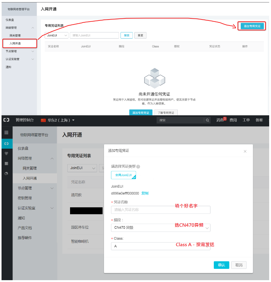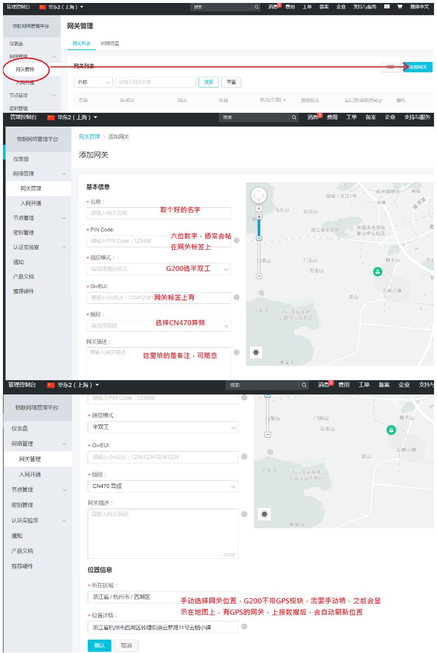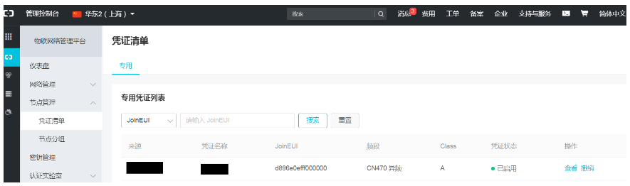步骤四:在物联网平台上配置LoRa节点