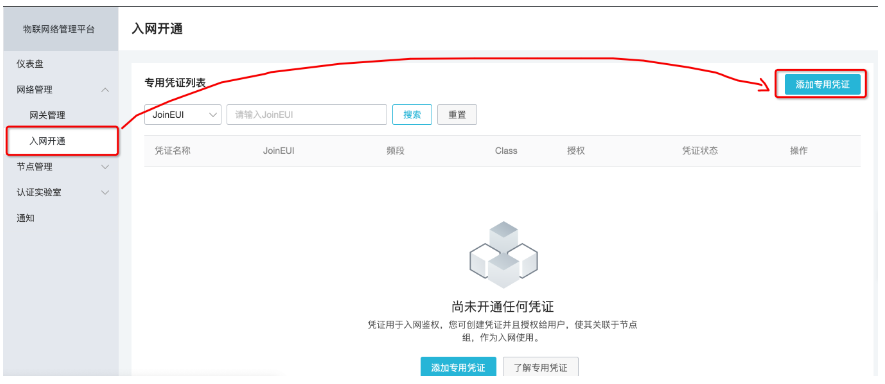 需要点击“专用凭证”,然后选择之前“入网开通”申请的凭证。