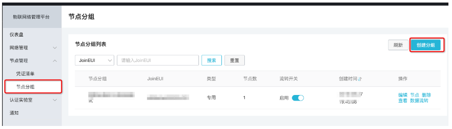 进入LinkWAN平台,首先需要向网关拥有者(即自己)申请一个节点分组(JoinEUI)。