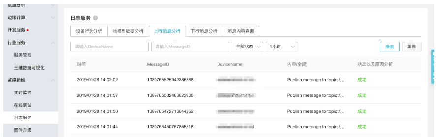 同时物联网平台的设备也收到了日志。