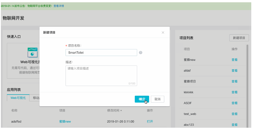 我们首先需要建立一个项目,以项目维度管理我们的智能厕所应用。