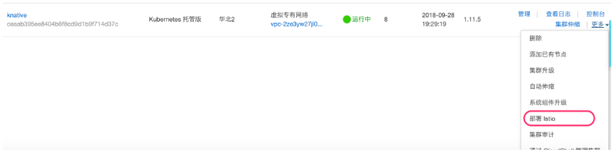 Knative serving运行需要基于Istio,目前阿里云容器服务Kubernetes已提供了快速一键部署的方式来安装配置Istio。具体过程可以参考部署Istio。