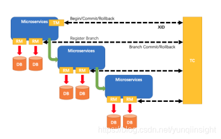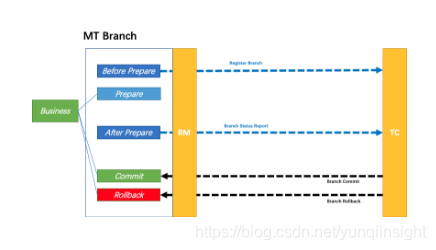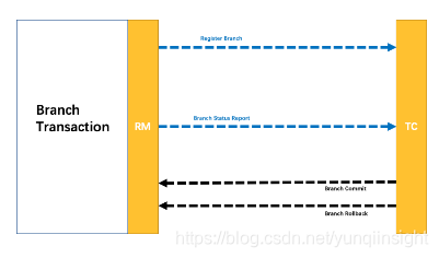 -  RM 向 TC 注册分支事务,将其纳入 XID 对应全局事务的管辖。