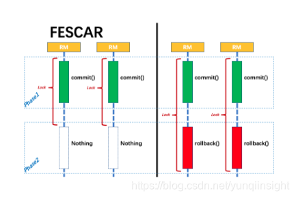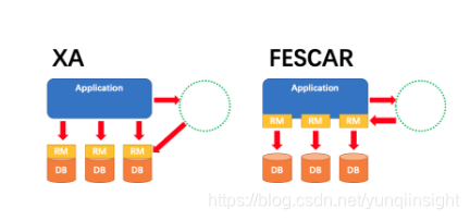 至此,Fescar 的协议机制总体上看与 XA 是一致的。