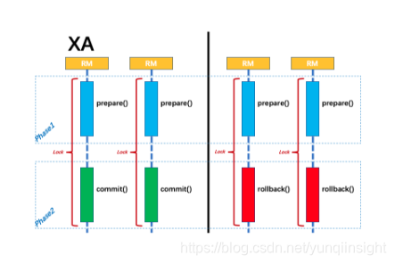 无论 Phase2 的决议是 commit 还是 rollback,事务性资源的锁都要保持到 Phase2 完成才释放。