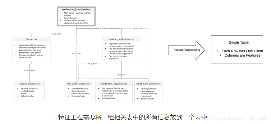 特征工程是获取数据集并构造可解释的变量—特征的过程,用于训练预测问题的机器学习模型。通常,数据分布在多个表中,并且必须汇集到一个表之中,其中的行包含观察结果和列中的特征。