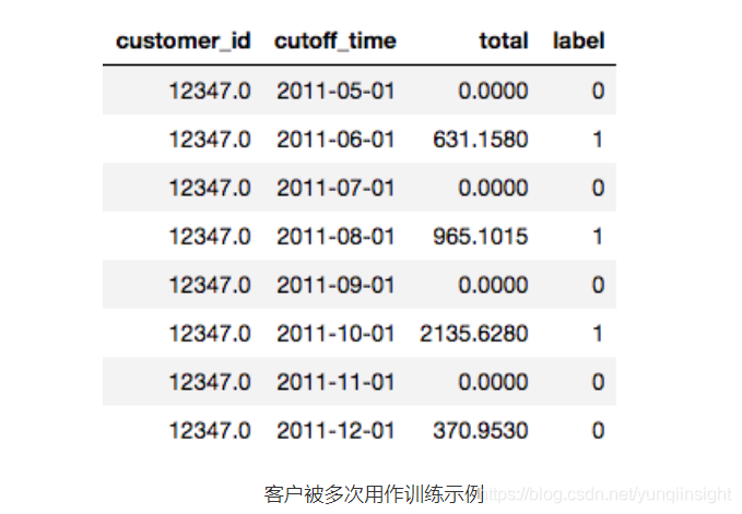 第二个数据集,在线时间戳的客户交易记录,预测问题是将客户分为两个部分,消费超过500美元的客户和消费不会超过500美元的客户。但是,不是对所有标签使用一个月,而是每个客户多次使用一个标签。我们可以把他们5月份的消费支出作为一个标签,然后6月份的,等等。