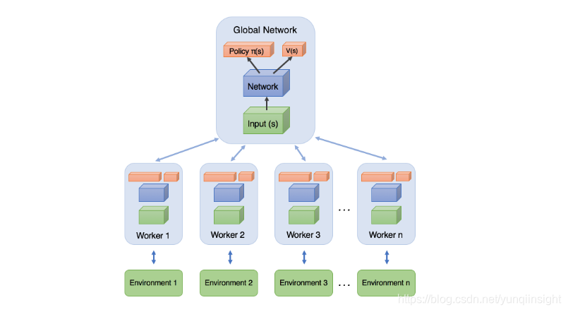 让我们看看实现现代DRL算法的基础是什么:演员评论家代理(actor-critic agent)。如前一节所述,为简单起见,我们不会实现并行工作程序,尽管大多数代码都会支持它,感兴趣的读者可以将其用作锻炼机会。