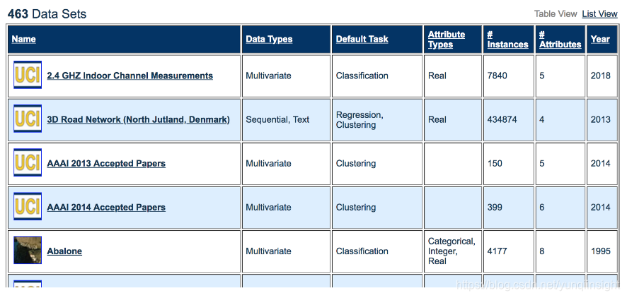网址:https://archive.ics.uci.edu/ml/datasets.html