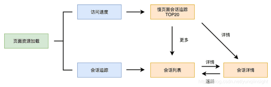 其中在在模块有7次会话访问的页面加载时间在7s以上,点击对应的页面,可以直接进入到会话详情页面,从而直观查看页面静态资源加载的瀑布图。