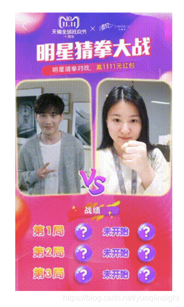 下面是18年双11期间上线的“明星猜拳PK”互动: