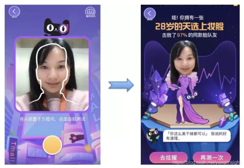 下面是结合了人像语义切割、用户年龄/性别预测的的18年天猫黑5“刷脸”活动: