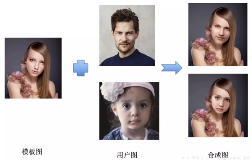 人脸融合是将用户自拍图片的人脸与模板图的人脸进行融合,融合以后,模板图的人脸呈现出用户人脸的五官特征与脸型轮廓,并保持原模板图的发饰、穿着,以此达到以假乱真的效果,实现“换脸”。 简单实现人脸融合并不困难,但是,如果想使得绝大多数的用户图片都能呈现满意的效果并不容易,有许多细节问题,其中最主要的两个问题是人脸变形与图像融合: