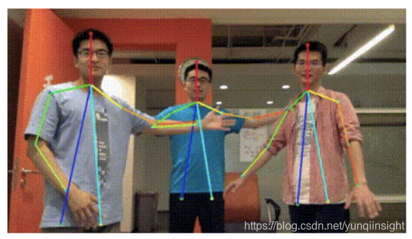 模型在高通骁龙845上运行单帧图片(320*320输入)只需要11ms,在RK3399这种低端嵌入式芯片上也可以跑到15fps,预测精度能够很好的支持我们线上线下的互动场景,且模型大小仅2.5M。下面是我们多人实时关键点识别在RK3399上跑的效果: