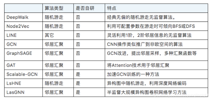如1.2节所述,除了LINE算法以外,我们实现的算法可以分为随机游走与邻居汇聚两大类算法。有关外部算法的详细信息,请参见1.2节提供的论文链接。下面我们详细介绍内部的三个创新算法,相关论文的链接我们会在github上给出。