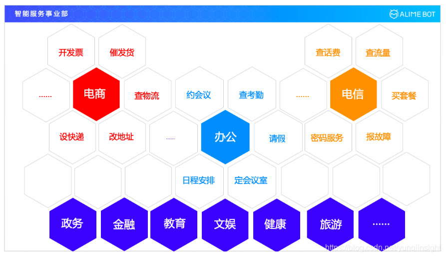 如果我们把视野再放大一点的话,再看一下电商行业,电商行业里面就会涉及到开发票、催发货、查物流、改地址、收快递等等,也会涉及到很多很多的这样的任务型对话场景;视野再放大一下,我们再看一下电信行业或者整个运营商的行业里面,会有查话费、查流量、买套餐、报故障或者是进行密码的更改服务等,也会有大量的这种任务型的对话场景。如果我们再一步去看的话,像政务、金融、教育、文娱、健康、旅游等,在各行各业的各种场景里面我们都会发现这种任务型的对话,它是一种刚需,是一种普遍性的存在。