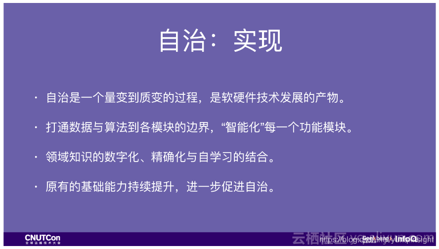 目标有了,具体怎么实现?首先,自治是一个技术的量变到质变的过程。在过去的一段时间里,我们应用了大量的新技术,包括存储计算分离,大数据处理与机器学习等等,掌握好这些技术是自治的基础。