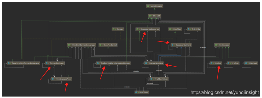CloseableHttpClient是一个抽象类,我们通过HttpClients.createDefault()创建的实际是它的子类InternalHttpClient。