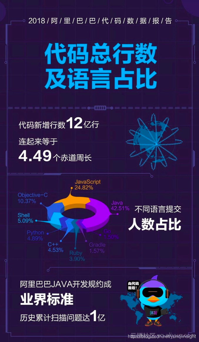 78年前,图灵用代码编译出的情报破解系统,让二战至少提前2年结束,挽救了2000万人的生命;50年前,登月科学家敲下的一行关键代码,启动了阿波罗号的着陆,成就了人类的一大步;30年前,蒂姆·伯纳斯·李利用代码创造了万维网,让普通人也能够通过互联网连接全世界……如同数字世界的艺术家、数字文明的建筑师,各个时代的工程师科学家们正在用一行行代码改变世界。阿里巴巴是这个时代的技术追梦人。2019年1月9日,阿里巴巴公布了其2018年度代码报告。报告显示,阿里工程师在2018年共写下了12亿行代码,总代码长度可绕地球4.49圈。