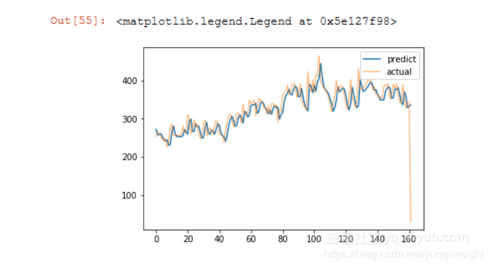 在下图中,我们看到LSTM在拟合测试数据集方面做得非常好。