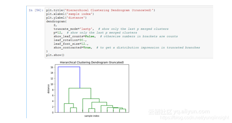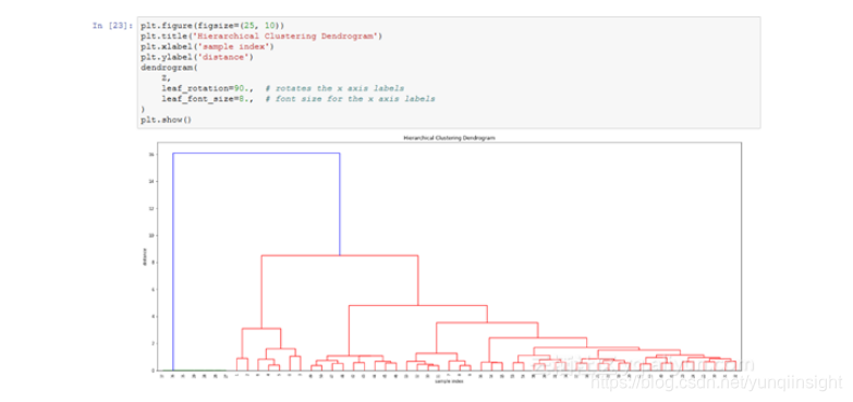 ·那些垂线告诉你哪些聚类或者标签是合并的一部分,从而形成了新的聚类;