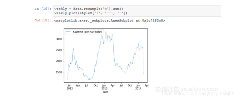 ·data.resample()方法将用于对DataFrame的kWh列数据重新取样;