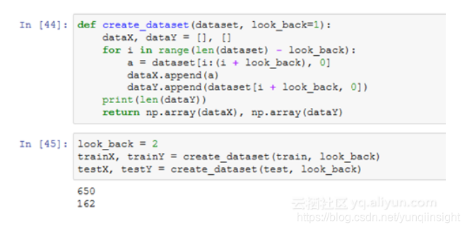 我们可以定义一个函数来创建一个新的数据集,并使用这个函数来准备用于建模的训练数据集和测试数据集。