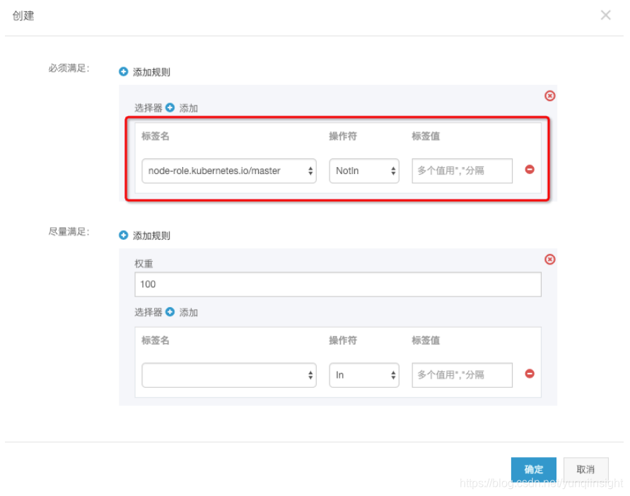 只选择worker节点安装。设置节点亲和性如图。