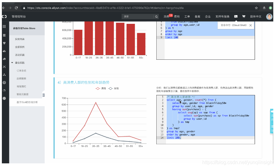 这样,基于DLA+SQL实现的TableStore实时在线分析已经完成,是不是很简单?