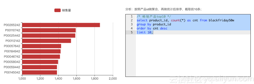 如下为控制提供的SQL场景,用户可以仿照控制台中实例自己写一些需求SQL,开来尝试吧!