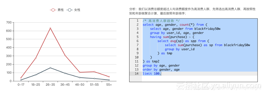 6)开始查询和分析(用户可以分析自己的数据,符合mysql的语法)
