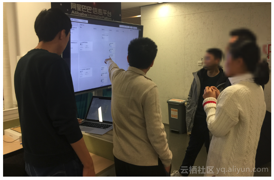 A:电子看板的好处就是便于异地开发,各地成员都打开看板页面,同时用电话会议的方式接入,进行异地站会。目前Aone看板已可以做到需求卡片移动后瞬间同步。