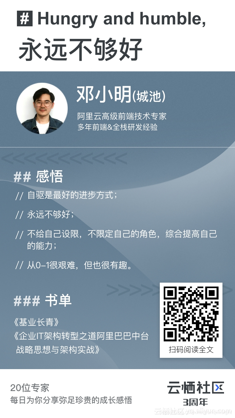 所以社区特别制作了这个专辑——分享给开发者们20个弥足珍贵的成长感悟,50本书单。