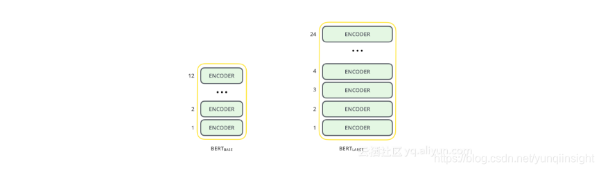两种BERT模型都有大量的编码器层(本文称之为Transformer Blocks),其中Base版本为12个,Large版本为24个。它们还具有更大的前馈网络(分别为768和1024个隐藏单元)以及比初始论文中的转换器更多attention heads(分别为12和16)(初始论文的转换器中有6个编码器层,512个隐藏单元,和8个attention heads)。