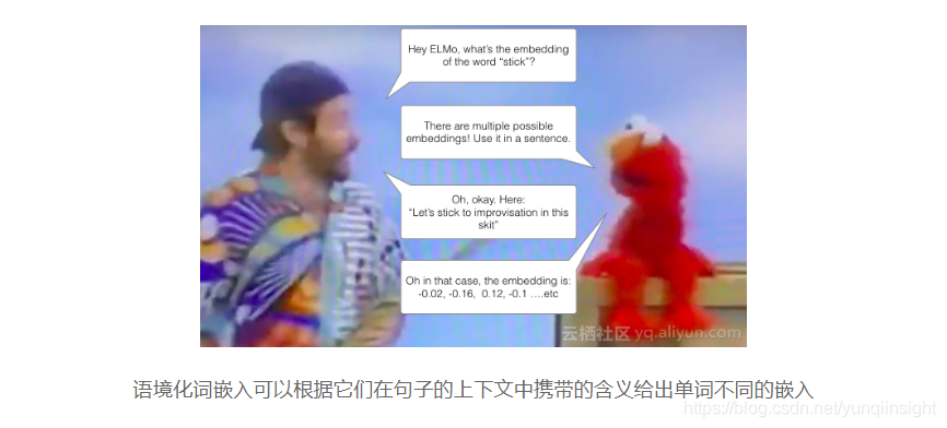 如果我们使用GloVe,那么“stick”这个词将由一个向量表示,无论上下文是什么。但是,许多NLP研究人员(Peters等人,2017年,McCann等人,2017年及Peters等人,2018年在ELMo论文中)发现“stick”有多个含义,这取决于它的使用位置。为什么不根据它所使用的上下文给它一个嵌入呢?这样既捕获该上下文中的单词含义以及其他上下文信息。因此,语境化嵌入词诞生了!