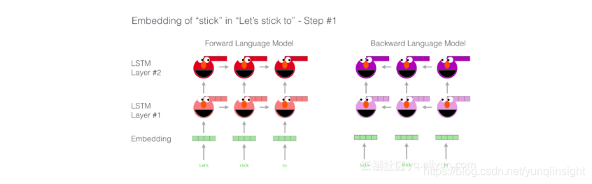 ELMo实际上更进一步,因为双向LSTM,这意味着它的语言模型不仅具有下一个词的感觉,而且还有前一个词。