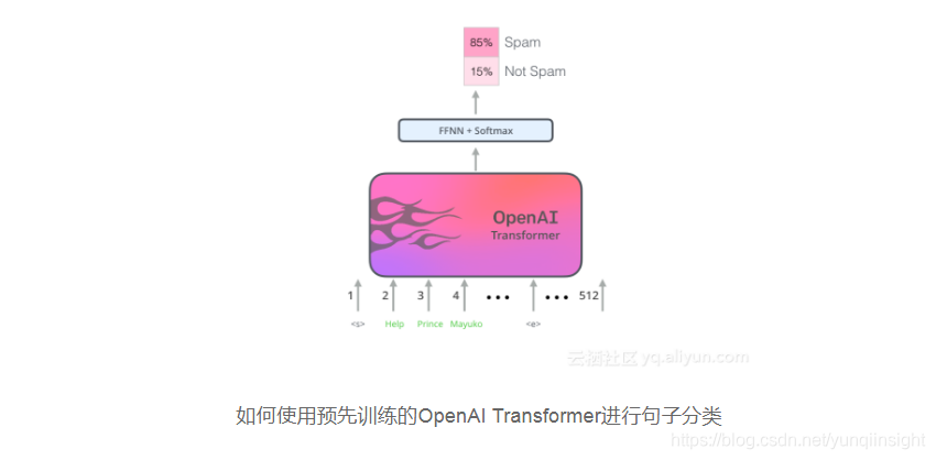 既然OpenAI Transformer已经过预先训练,并且其层也经过调整以合理地处理语言,我们就可以开始将它用于下游任务。让我们首先看一下句子分类(将电子邮件分类为“垃圾邮件”或“非垃圾邮件”):