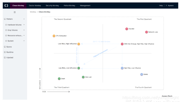 用来描述这些异常PATTERN对用户的潜在影响,目标不断通过技术、管理、流程等手段将第一象限中高风险、高影响的隐患优化到第三象限(更低的风险以及更小的影响)