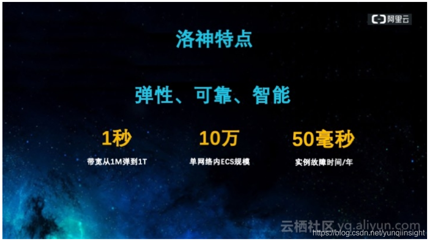 接下来介绍阿里云网络洛神系统的关键技术。三个关键词:弹性、可靠和智能。