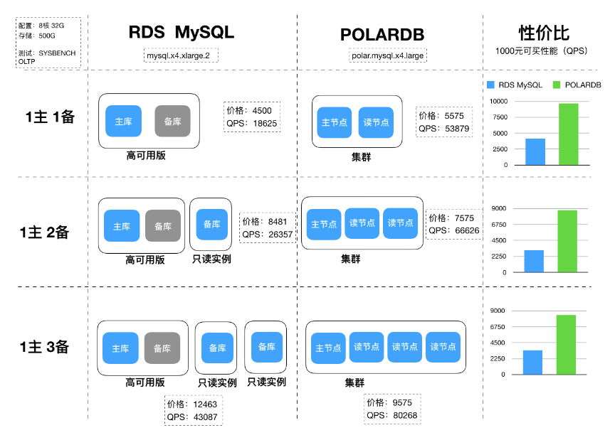 我们简单算笔账,来看一下POLARDB和RDS MySQL的性价比。