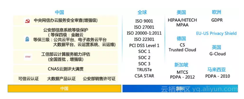 在阿里云提供了可信和可控的数据保护技术手段的前提下,更进一步获得了中国和国际上的各大权威合规认证。目前阿里云已经成为合规资质最全的亚太云服务提供商,是亚太首家获得德国C5和ISO27001认证的企业,中国首家获得MTCS Level3和ISO 20000认证的企业,并为世界互联网大会、G20峰会、“一带一路”高峰论坛等多个国际重大活动,提供高等级网络安全护航。