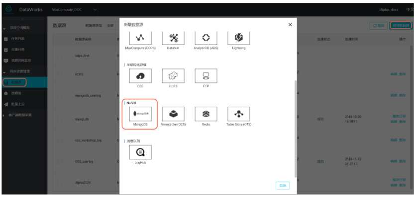 - 新增MongoDB数据源