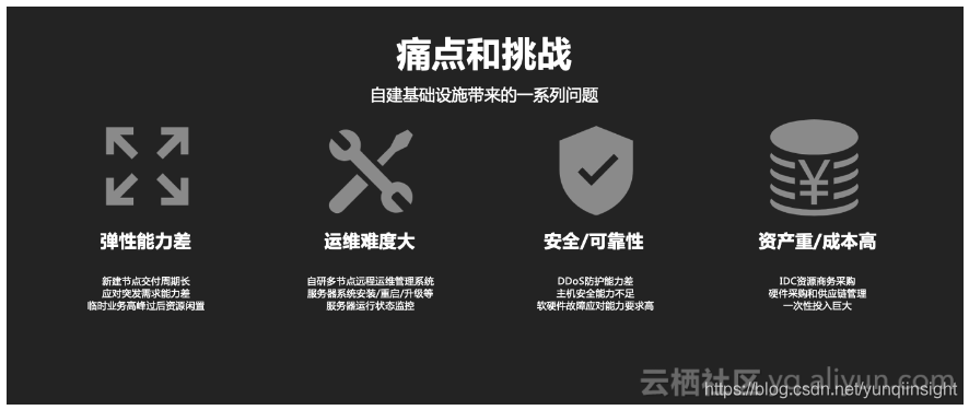 就像上图所说,自建基础设施的过程中会面临很多痛点和挑战: