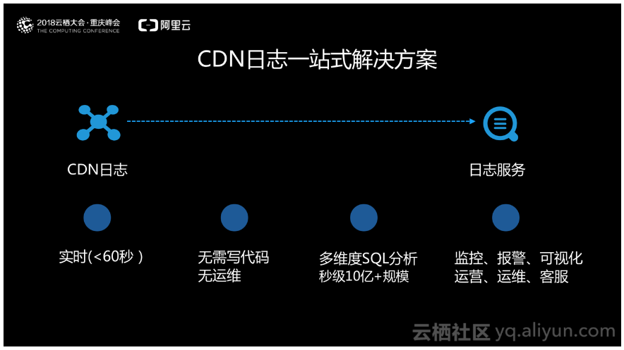 近期,阿里云CDN上线了实时日志功能,打通日志服务(SLS)的能力,将CDN采集的实时日志,在小于60秒的时间内投递至日志服务,进行实时、交互式分析和报表呈现。通过CDN日志的实时分析,可以快速的发现和定位问题,进而对日志数据的挖掘,提高数据的决策能力,将业务推向一个新的高度。点击跳转CDN实时日志专题页,了解功能详情。