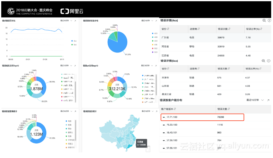 在这个过程中可以发现,整个分析流程,是从上到下、从面到点、交互式的分析,涉及到Drill Down/Roll Up等多方面。因此,灵活和方便是系统必备的两项。在以下的视频中,展示如何在日志服务中,对CDN日志进行交互式的分析。