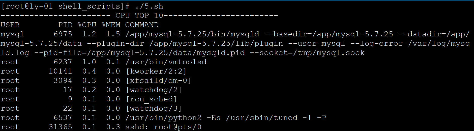 ps -eo user,pid,pcpu,pmem,args --sort=-pcpu |head -n 10