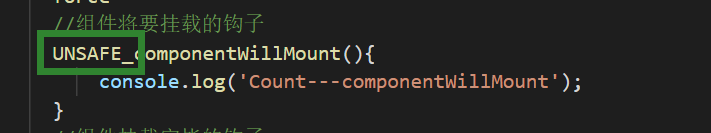 1.(上面代码是旧生命周期的)三个钩子需加上:UNSAFE_ name