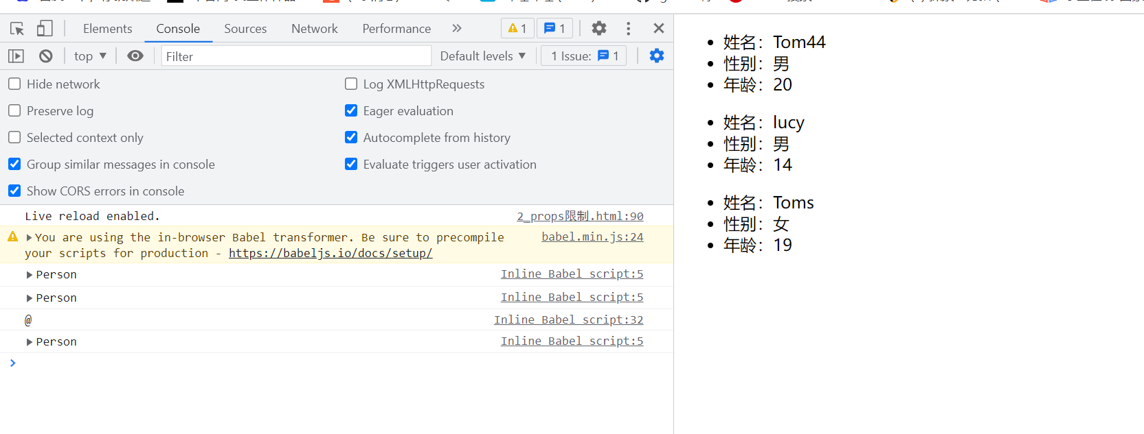 ReactDOM.render(<Person name="lucy" age={13} />, document.getElementById('test2'));